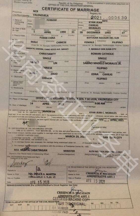 菲律宾结婚证和结婚签证的一些图片样式,大家可以做为参考和对照。