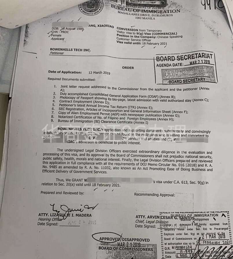 菲律宾9G工签降签章样式图片讲解图片