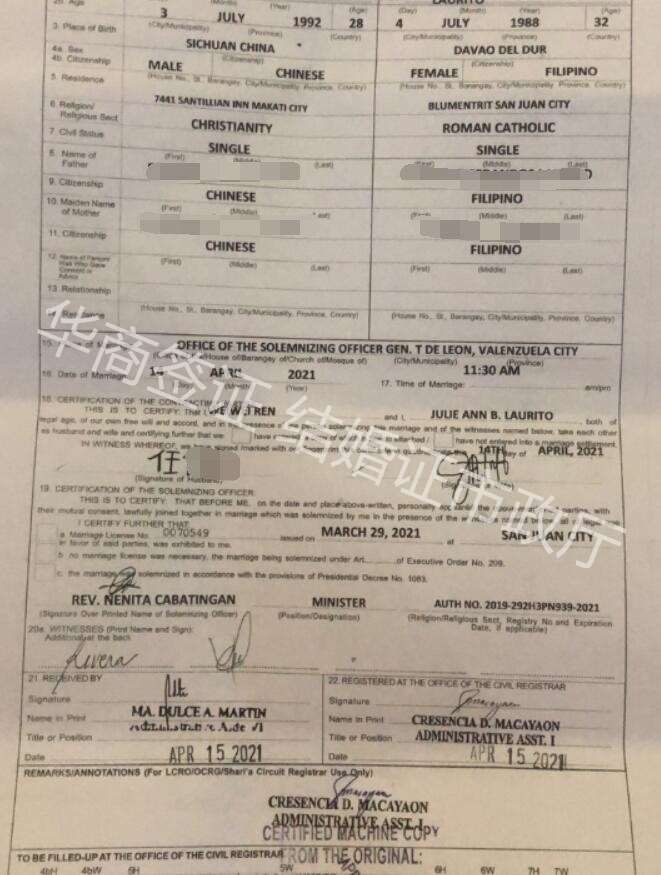 菲律宾结婚证图片样式讲解
