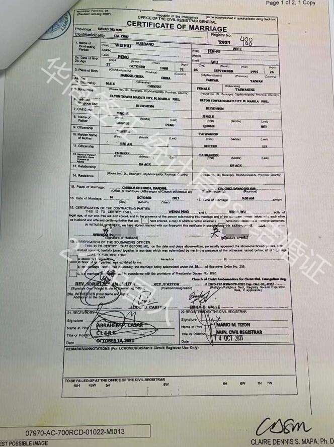 菲律宾结婚证又分为几种,如果是想要结婚入籍的客户,更容易搞混。菲律宾结婚又分为市政厅认证结婚证、统计局认证的psa结婚证、13a结婚,都可以在我们网站上看到详细说明。这些就是一些给予大家用于对比和参照的结婚证样本图。