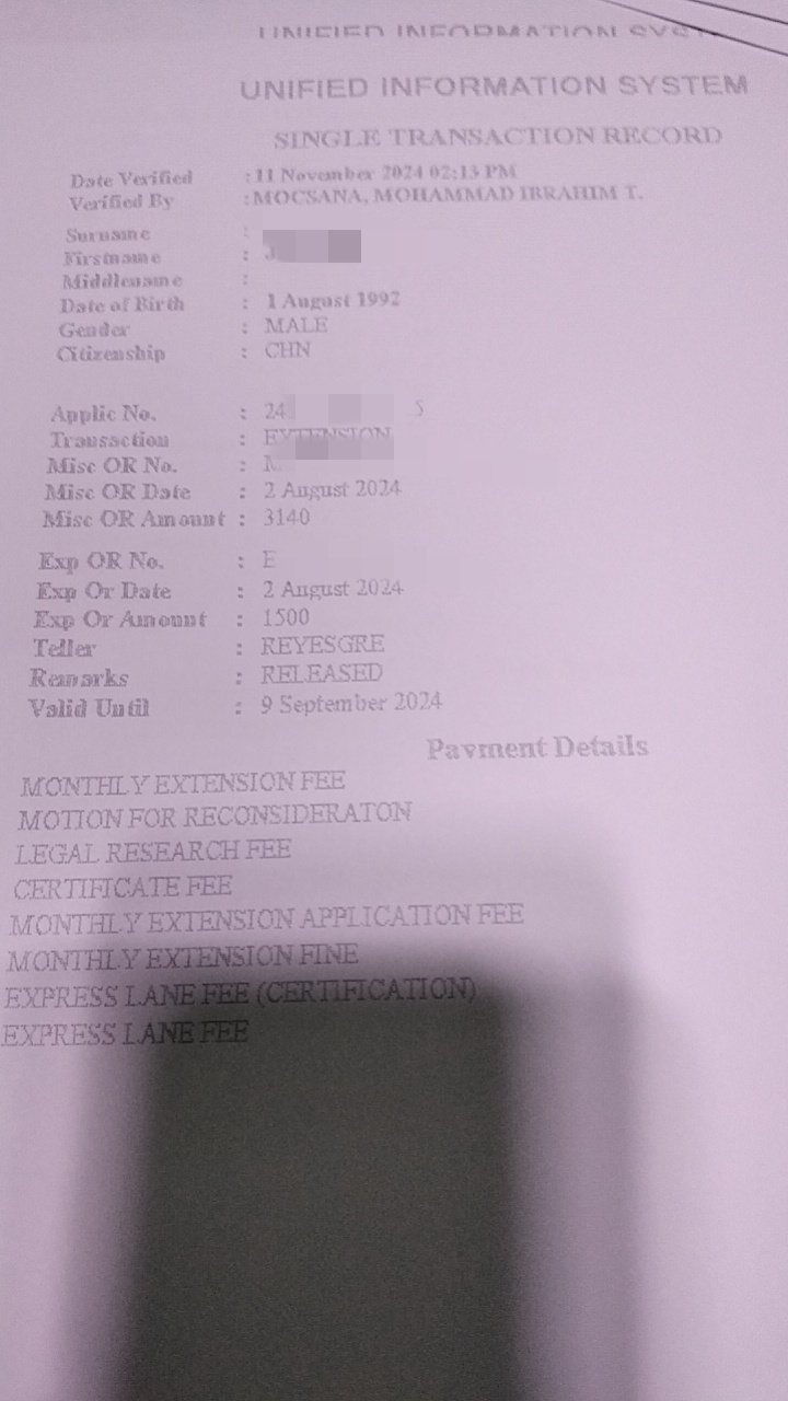 之前9月份已经办了降签了,现在签证就到这个月19号这个就到期了,中间办我老婆的中国签证、出境的手续、还有我们的结婚证海牙认证后面办我的ECC手续,总体其实挺赶的,但还好前几天我的ECC也给我们出了,我前天也已经顺利带着我老婆回国了没被拦,也是听说了很多菲律宾人出境会被海关拦幸好我们提前问了华商需要准备什么了