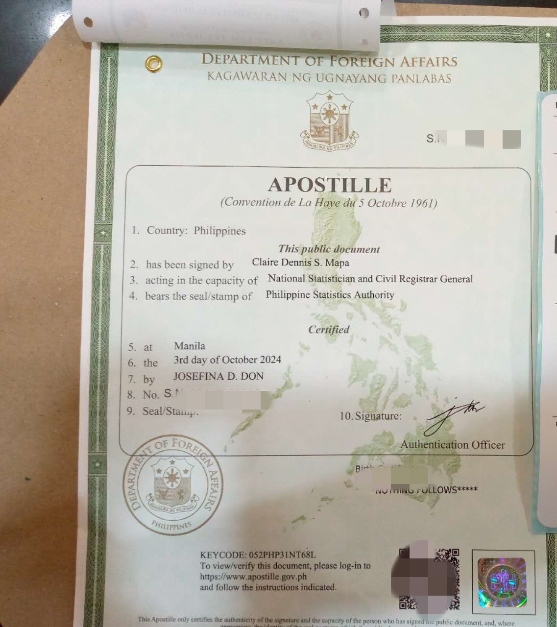 今天他们的小菲带我老婆去DFA做完没结婚证的海牙认证了,因为我们着急出下个月20号这样就打算回国了探亲签这些后再华商这办好了,就等这个认证办了之后我们在国内方便一点做居留证之类的,小菲带我老婆去就能出快一点,上星期台风DAF停工了几天排队好多人,华商很耐心的处理我们的事情