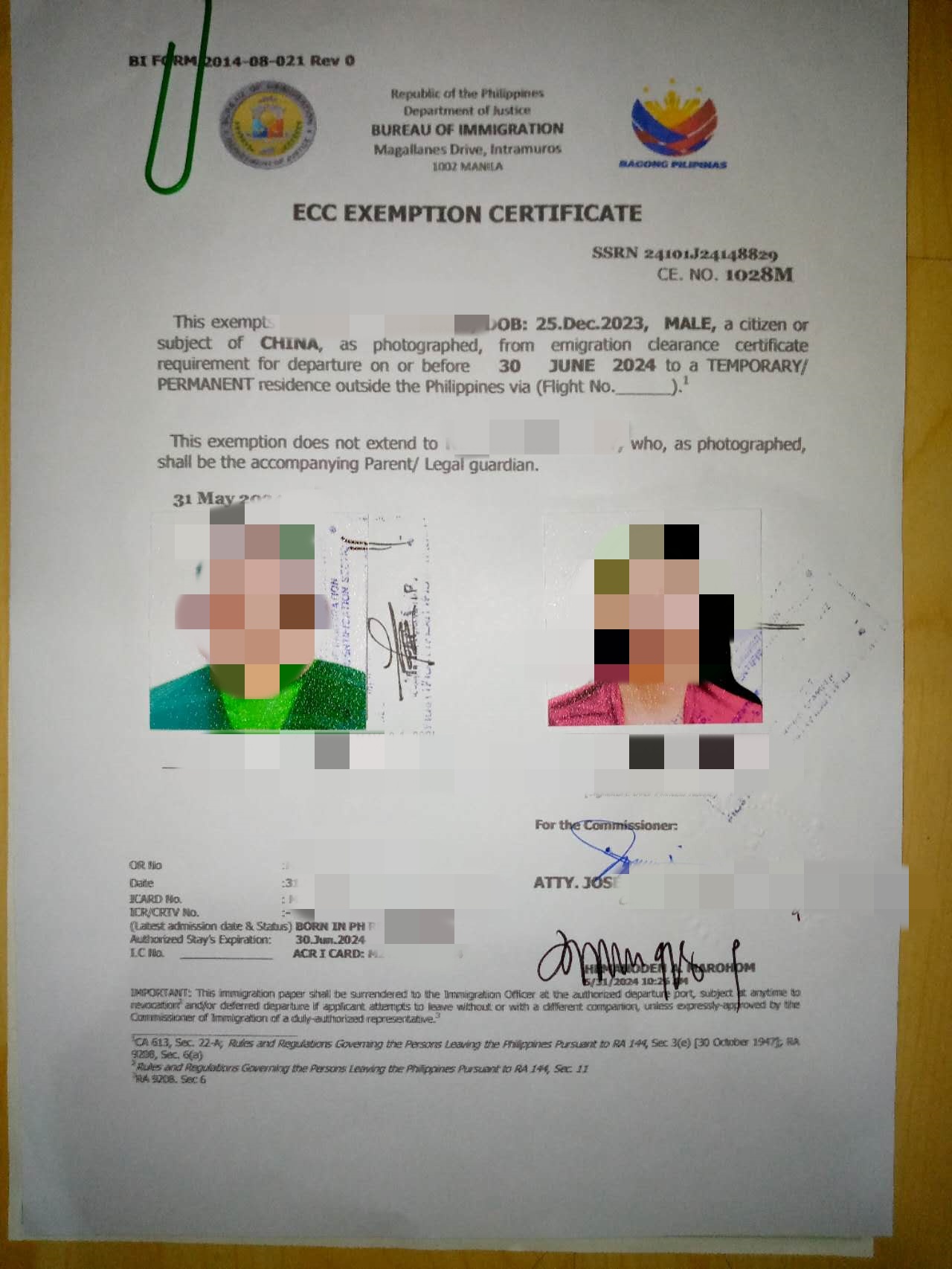 最近菲律宾政策形势真的是严的很,但还好华商靠谱,跟他们合作了这么久,他们也不亏是在菲律宾做了这么多年,顺利出了我老婆和我小孩的签证和ECC