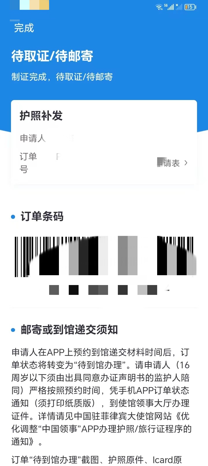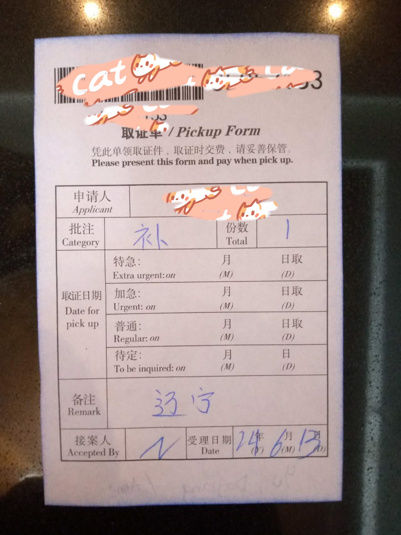 我补办的护照好了,可以取了,真不错很挺快的,还有代取服务,能帮忙去使馆取了寄到我家里来,奈斯奈斯