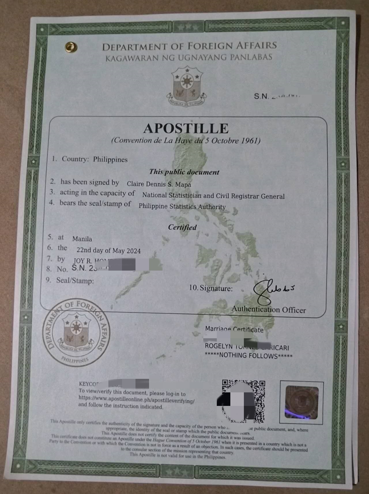 婚签办出来了,我和我朋友一起办的,我的比我朋友的快。这下在菲律宾不用担心了