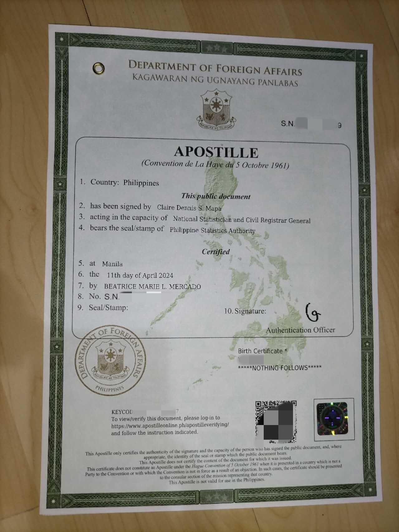 孩子的出生纸PSA认真和海牙认证都找华商办理的,很负责,做事都是一条龙处理的,做事也很细心