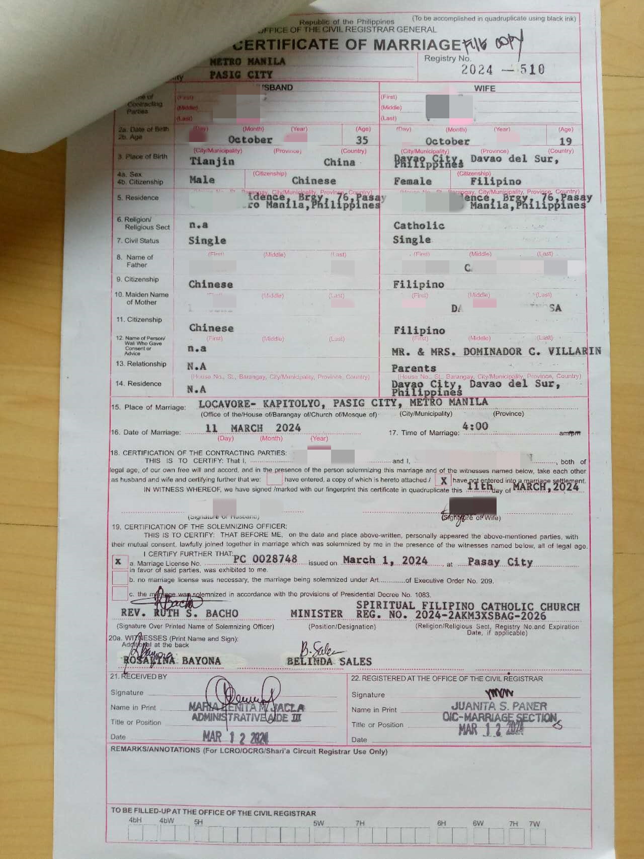 好评推荐,办理菲律宾的结婚证绝对是很OK的?。?!市政厅和统计局的结婚证都是在这边办理,办理的很快全程都不用出面,证到了也是骑手送上门,还是很赞的