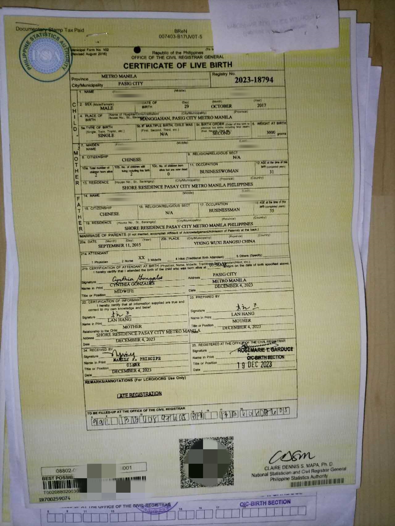 现在在菲律宾办理证件需要的资料越来越多的,只能找专业的人来帮忙处理了,现在先办理娥孩子的出生纸PSA 再接着办其他手续