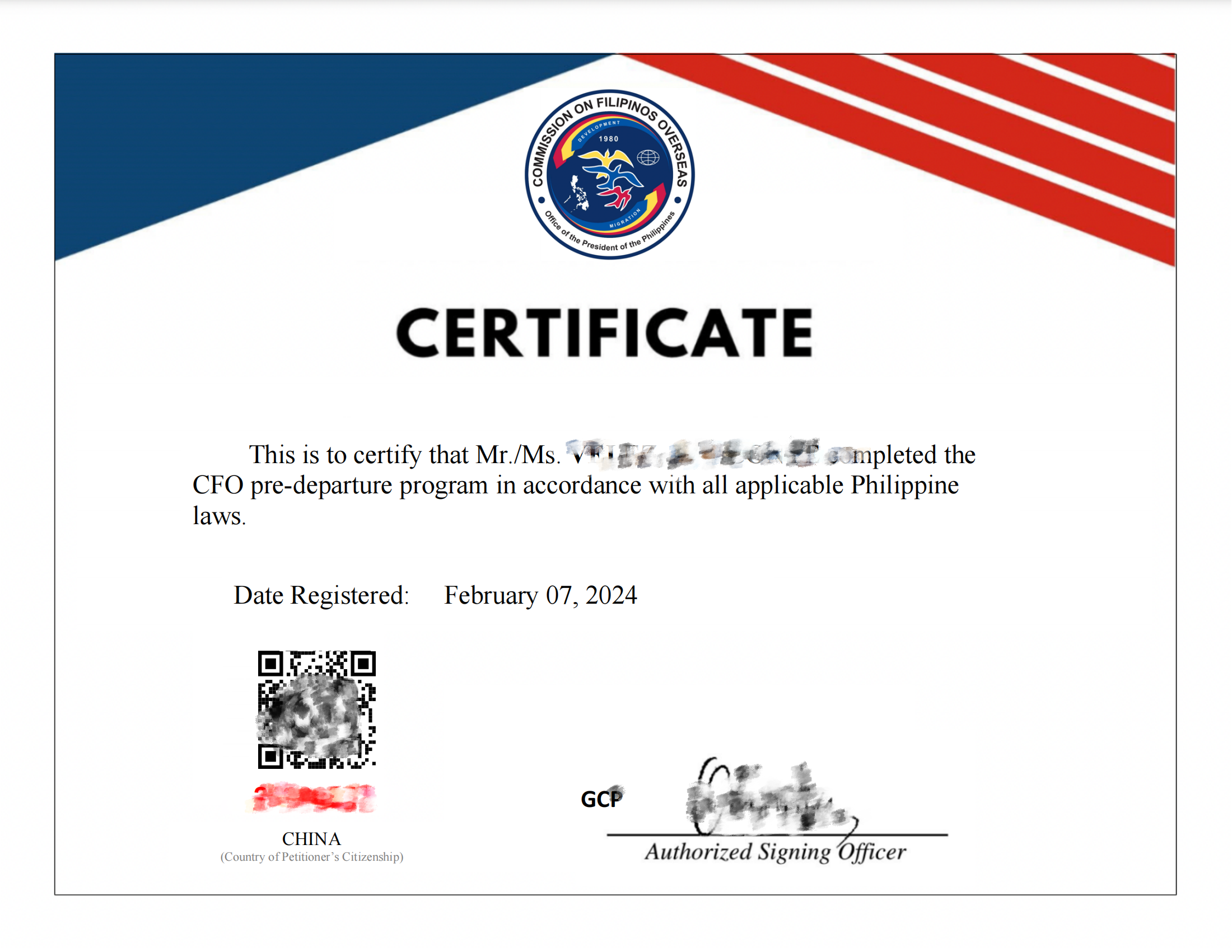 办理完探亲签还要在办一个CFO才能带菲律宾人出镜,也交给华商去办了,还好办的快,速度快赶在过年出了,现在能回去了