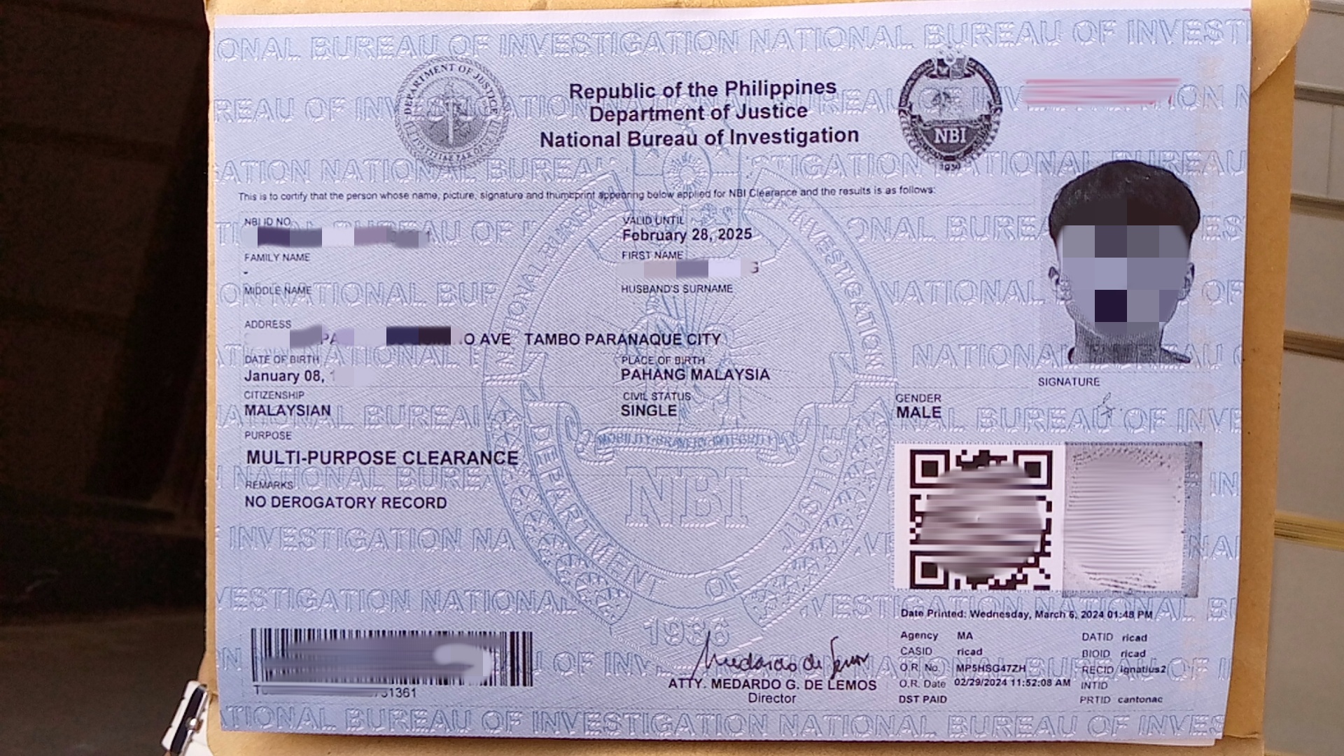 办理了NBI无犯罪记录,服务还是可以的,有专门的人带你办理按指纹什么的,指导得很到位还是挺好的