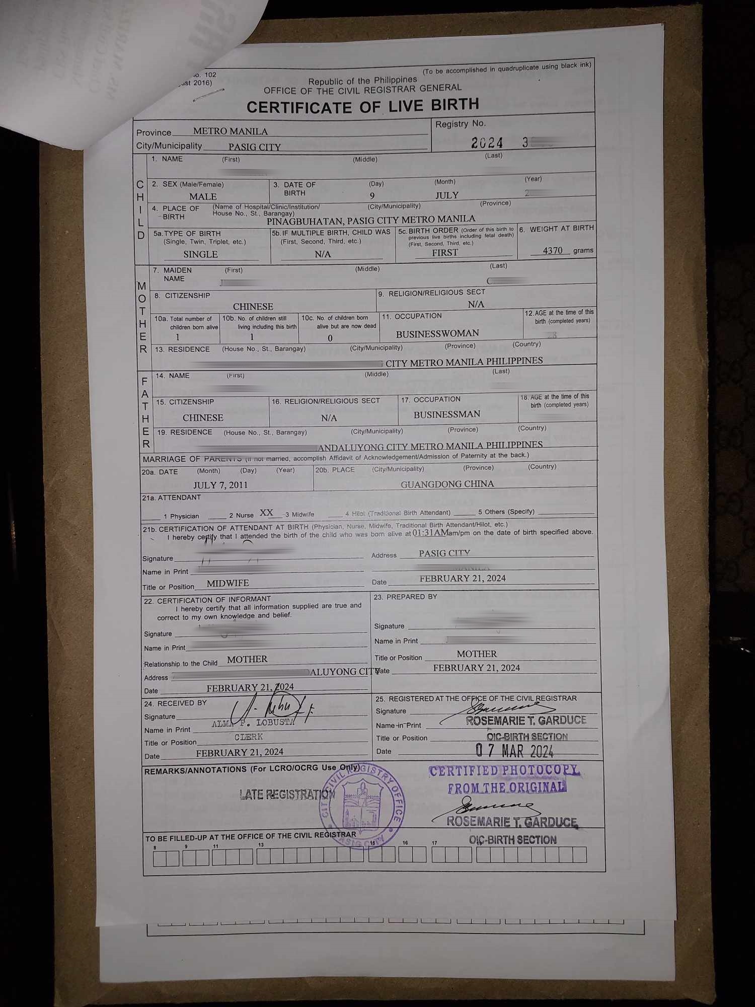 现在在菲律宾办理证件需要的资料越来越多的,只能找专业的人来帮忙处理了,现在先办理娥孩子的出生纸PSA 再接着办其他手续