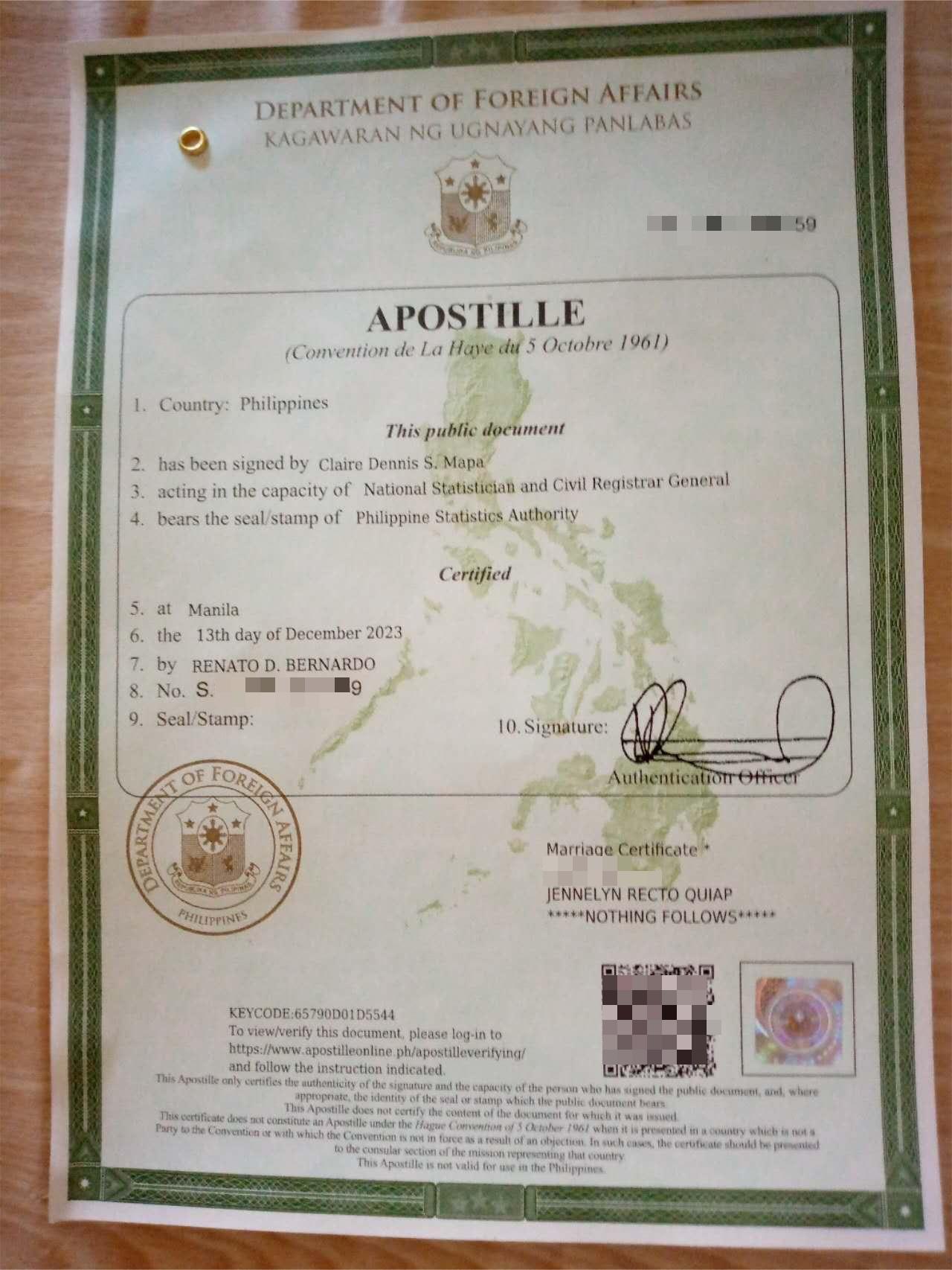 临近年底了,菲律宾各种节日,各种假期,也不知道大使馆跟不跟着菲律宾放假。本来还担心来不及呢,要是现在还没出证,等出证后再做盖章,也不知道能不能来得及在过年前回去,还好华商靠谱,现在出证了悬着的心也稍微放下来一点了,接着做补入境盖章,时间应该是够的了