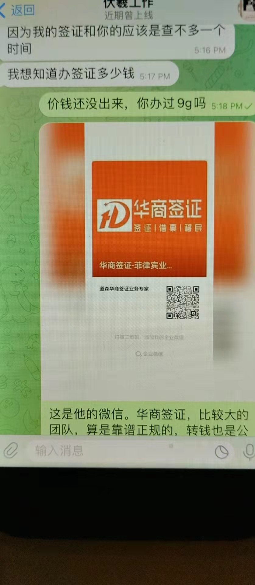 华商签证也是一个在菲老牌企业了,对于各种业务也比较熟悉,处理事情也是及时效率,挺靠谱的,如果想要处理业务的还是选择这家,耐心,靠谱,稳定。