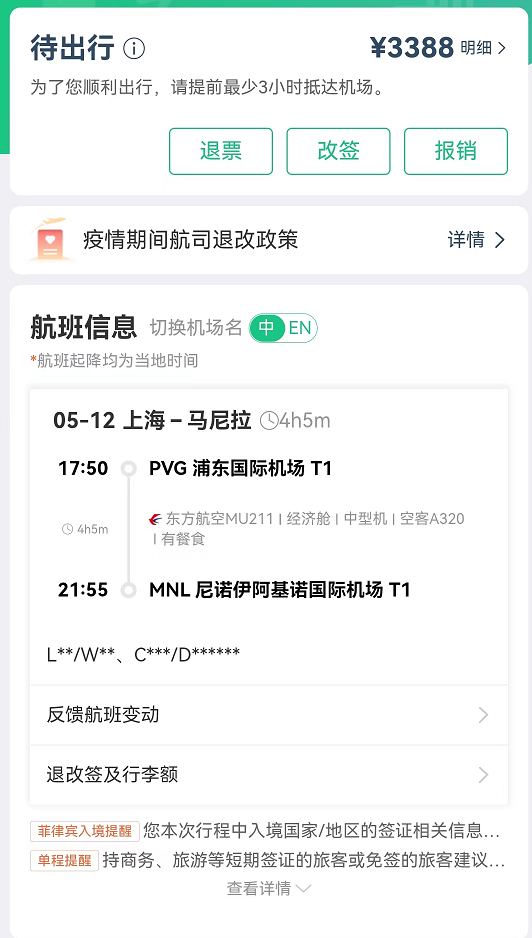 明天的航班信息,华商加班给我安排好明天入境的全部手续,值得推荐