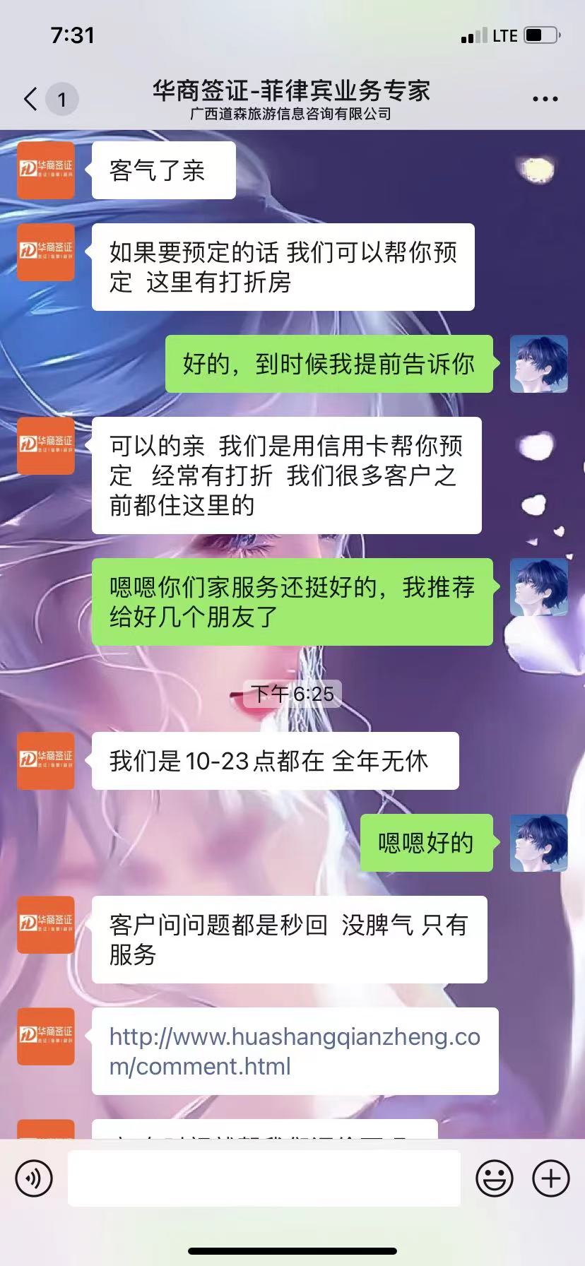 去过菲律宾旅游过几次,也找过其它代办公司,讲服务来说华商签证的服务是没得说,相当不错也有耐心,也快是直当值得信赖的公司,下次还会找华商签证。
