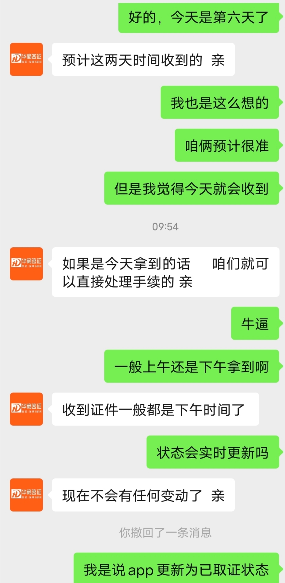 感谢华商签证的耐心陪伴,我自己办的旅行证,但是在办理过程中,因为自己经验不足,导致很久没办下来,后来找的华商签证接手,我有过情绪波动,也是华商签证的工作人员耐心的开导和温馨的陪伴,让我走过了这段低迷期,非常的感谢。华商签证给人的感觉不是在做业务,而是当我遇到任何不懂的事都是耐心在告诉我为什么会这样,经验也非常丰富,强烈推荐大家找华商签证,一家真正靠谱的公司。真的很感激。