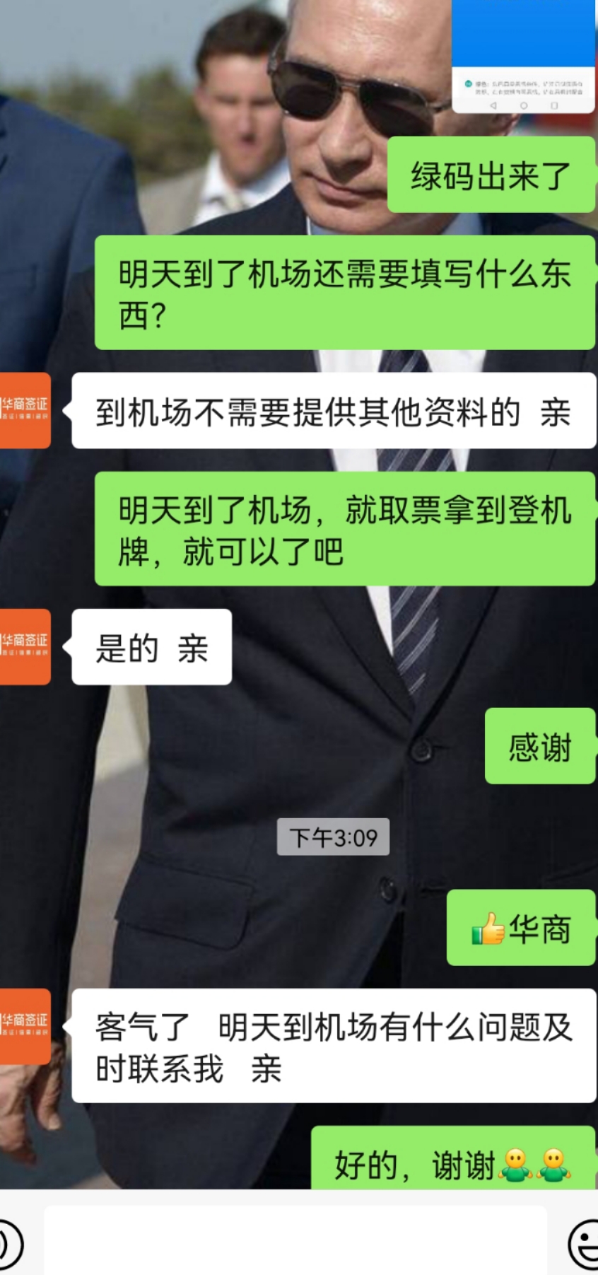 我们2个在华商这里办了好几次业务了,从一开始办理旅行证 签证,9g,补办护照,从头到尾服务还是很贴心的,也很负责任。值得信赖,给个大大的好评