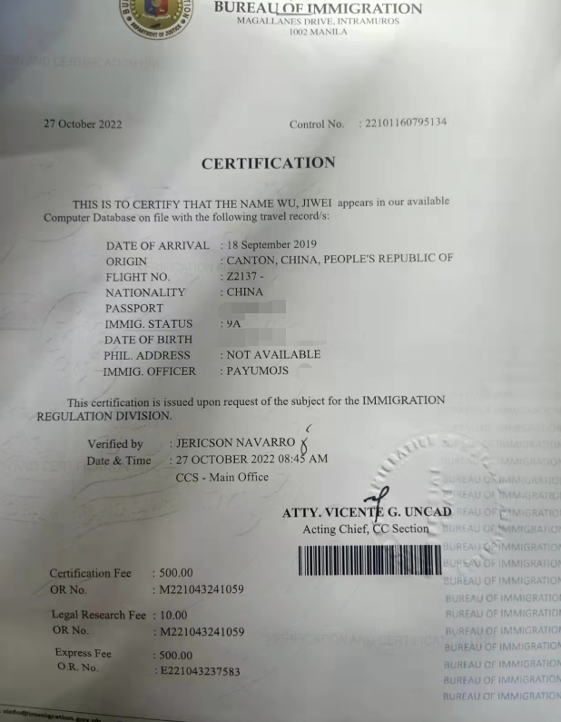 我和我妻子的NBI CLEARANCE无犯罪证明过期了,我需要更新它,发现,我的能更新,但是我妻子的更新不了,因为查不到数据了。我们急用这个无犯罪证明,我找到了华商签证,华商签证帮助我完成了证书更新。解决了我的难题,这个事证明了华商签证的专业性和办事能力。强烈推荐!中间过程中,我曾经但心他们办不了,但是,最终事实证明他们的承诺都是真诚的。