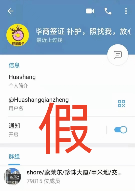2、冒充“华商签证”Telegram账号②↓↓↓: